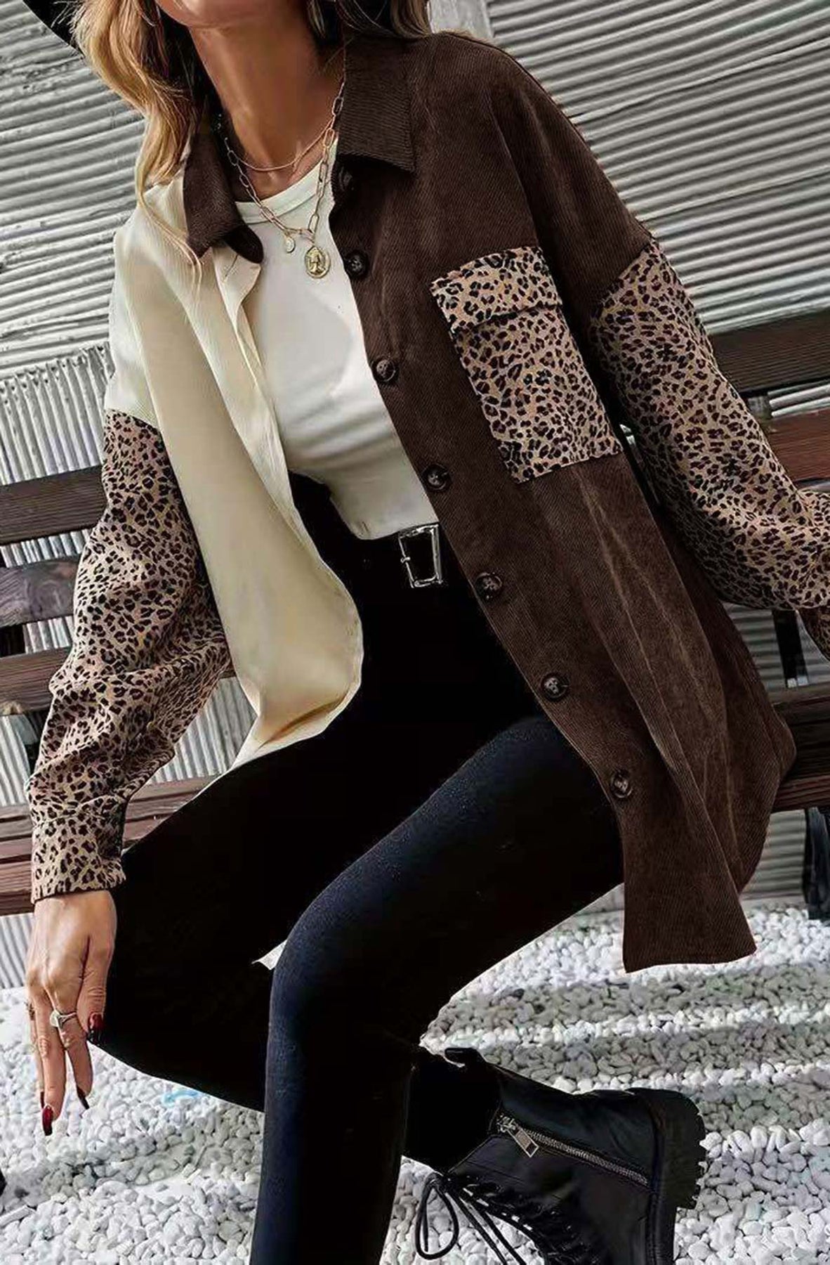 ✨ A premium patchwork shacket combining corduroy warmth with suede leopard detail — perfect for effortless layering and high sell-through appeal.