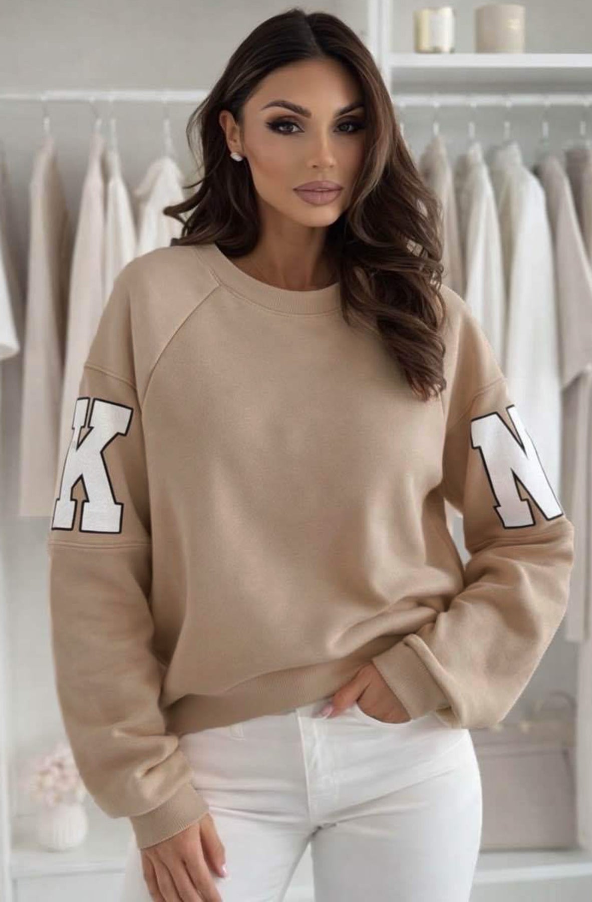 The standout letter detailing on the sleeves adds a sporty, fashion-forward twist, while the soft-touch fabric feels beautifully smooth and cosy against the skin ☁️