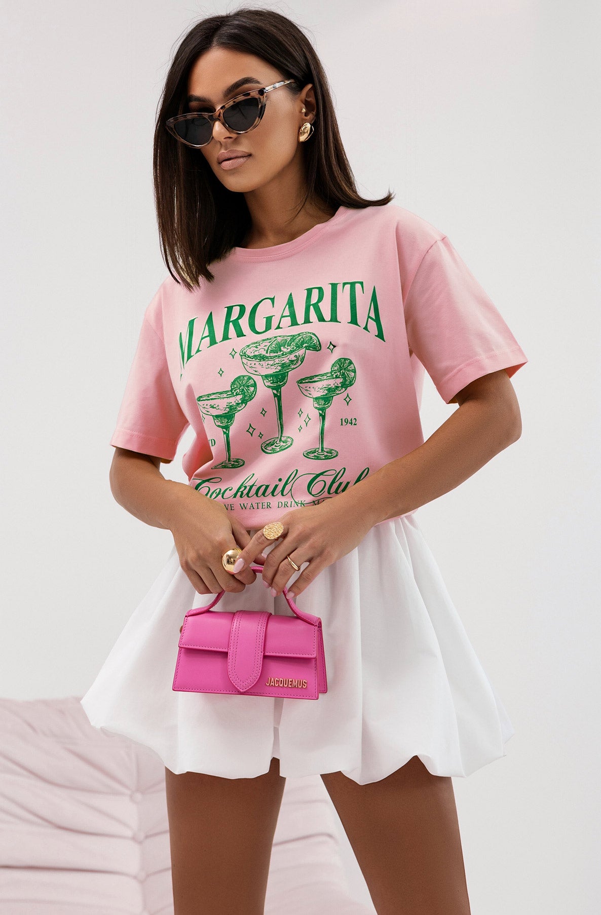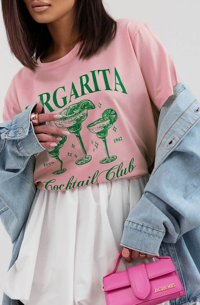 'Margarita Cocktail Club' Graphic Printed T-Shirt Top-Pink
