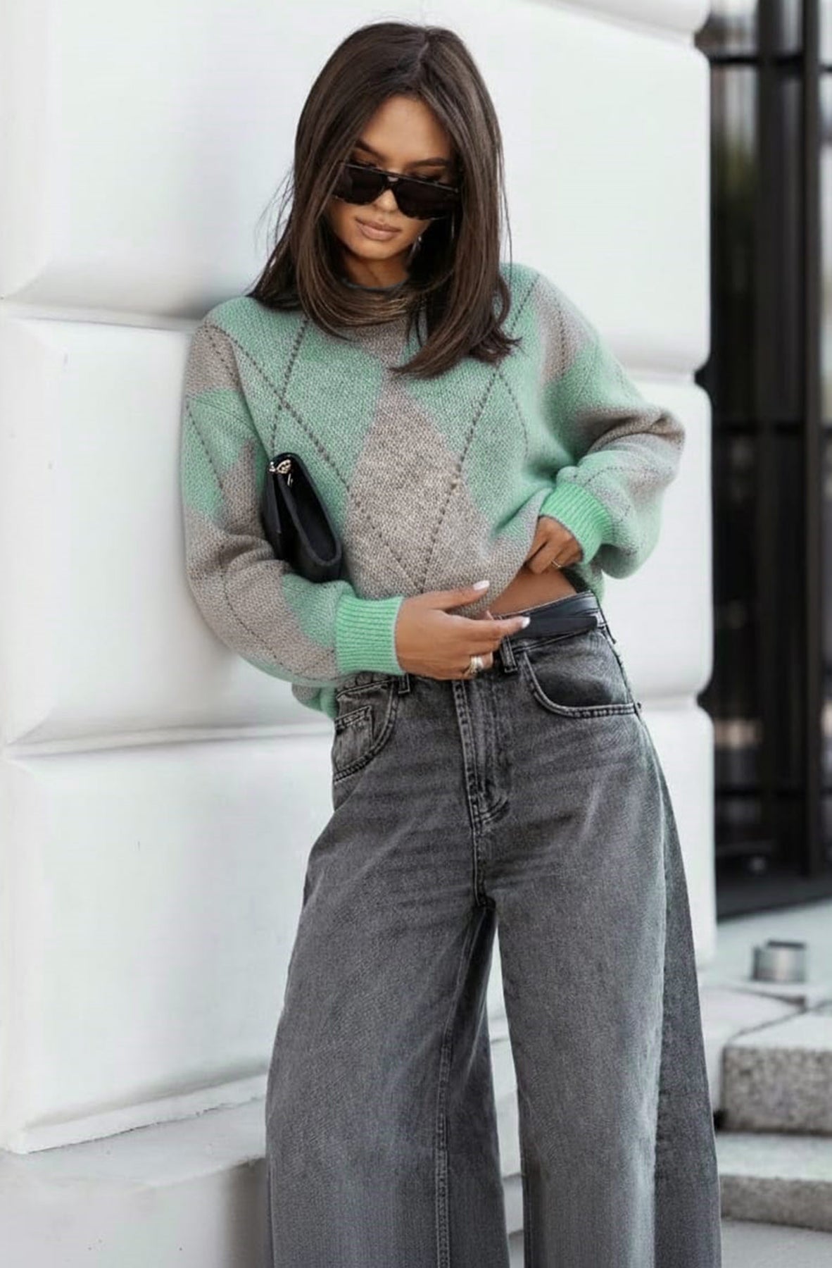 ✔️ Argyle diamond knit pattern on front & sleeves