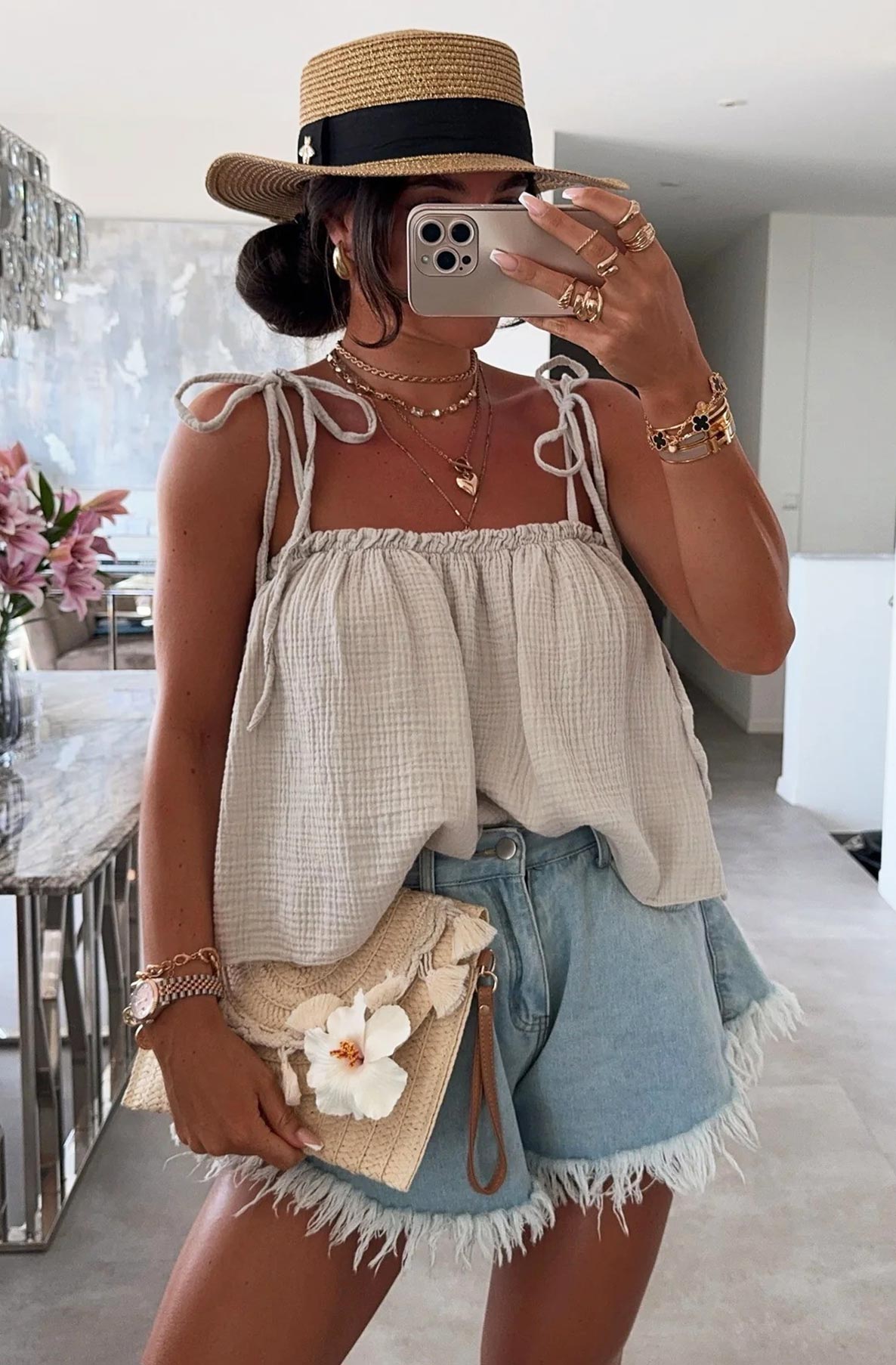 Get ready to fall in love with the Lacie Top – the ultimate warm-weather essential! Made with ultra-soft cotton gauze and available in dreamy colours, this cropped beauty is your go-to for effortless chic. Whether you're brunching, beaching, or just vibing – Lacie’s got you. 💃