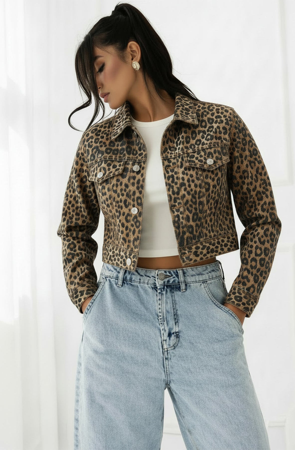 🐆✨ Luisa Leopard Print Cropped Denim Jacket ✨🐆